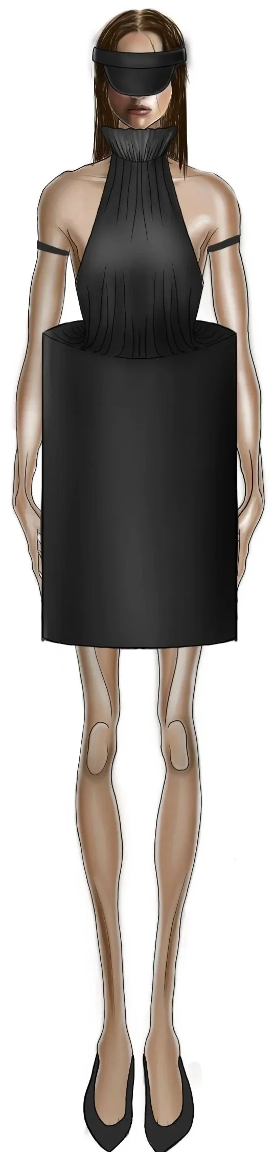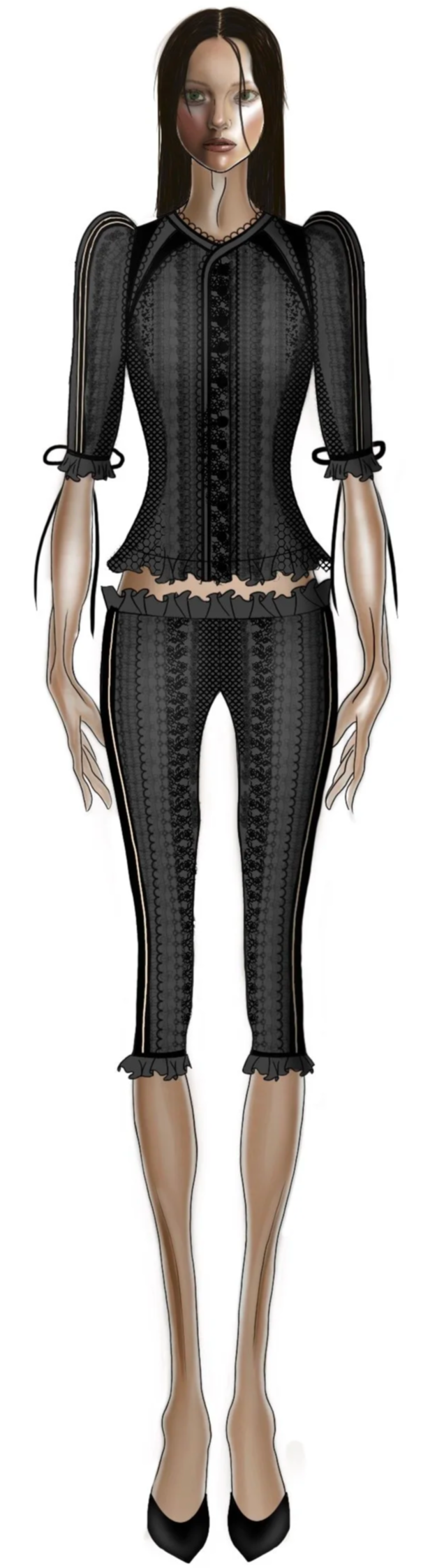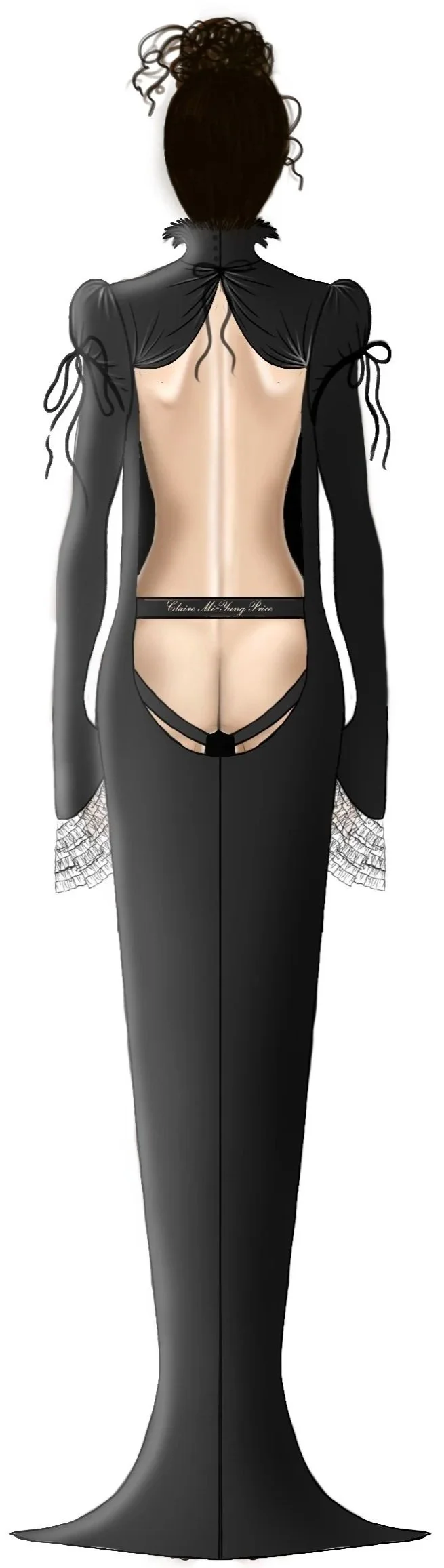 For my collection, I incorporated elements of body distortion to represent how humans mold themselves to move through society more successfully. Sports uniforms, workout gear, and athleisure helped flesh out silhouettes. I used pleating and volume to reference muscles and tendons. The name Push/Pull relates to the common name for workout split days as well as to describe the feeling of desire and obstacles. Beauty can come from a sad and dirty place, and I wanted this collection to reflect that. Born from my experience as a megalomaniac narcissistic crashout, this collection fused Victorian-era British fashion with modern athleticwear into an evening A/W collection.